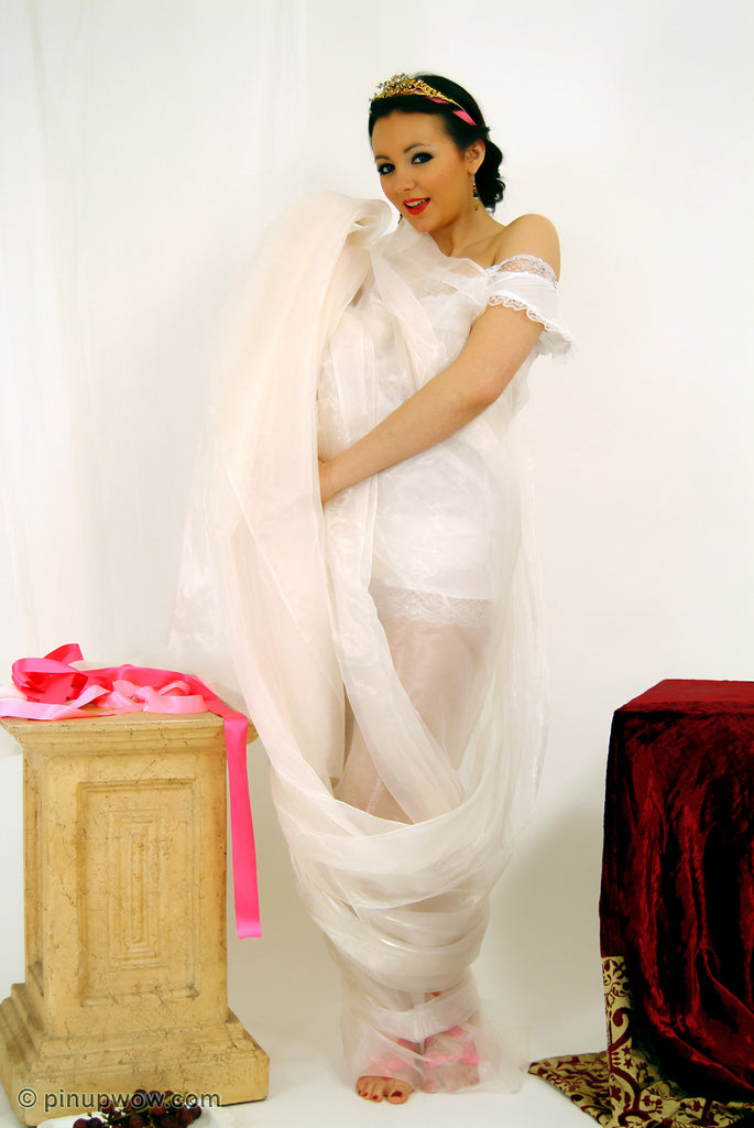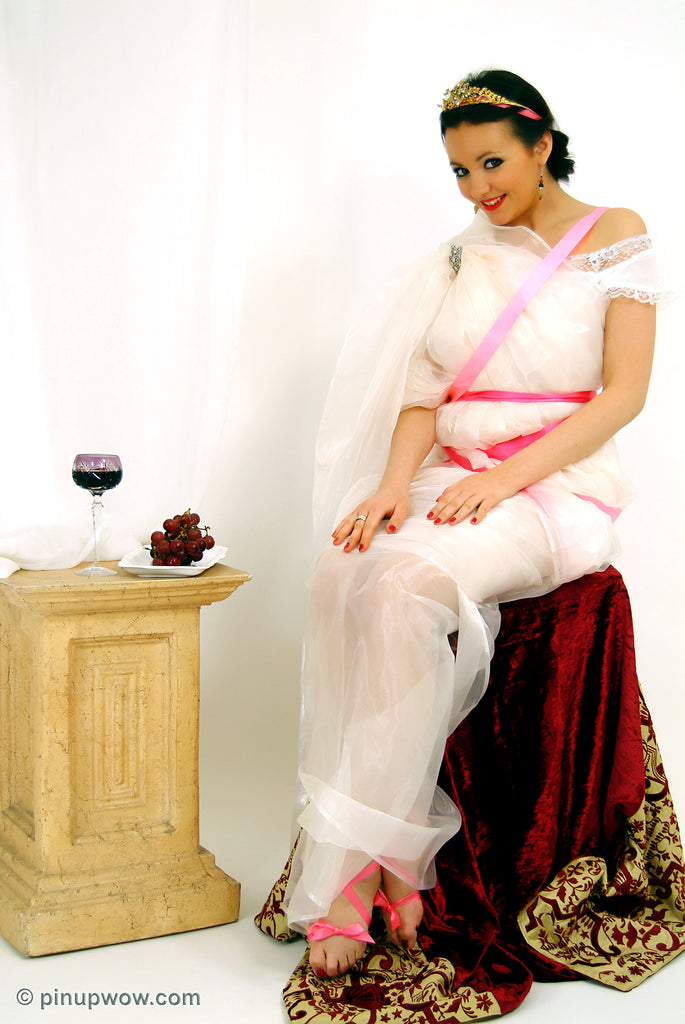Fabulous Pin-Up Rachael has stepped back in time to become a beautiful lady of Rome. As she relaxes with sweet red grapes and smooth red wine, we are reminded that even in classic times, the art of striptease was practiced and adored.
