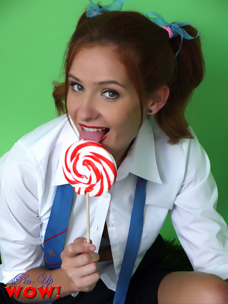 Saucy Pin-Up Elle is meant to be revising for an exam, but the fresh air and birdsong has started to make her feel decidedly frisky. With a twinkle in her eyes, she asks you not to say anything if she spoils you with a sweet treat striptease. Not a word, Elle!