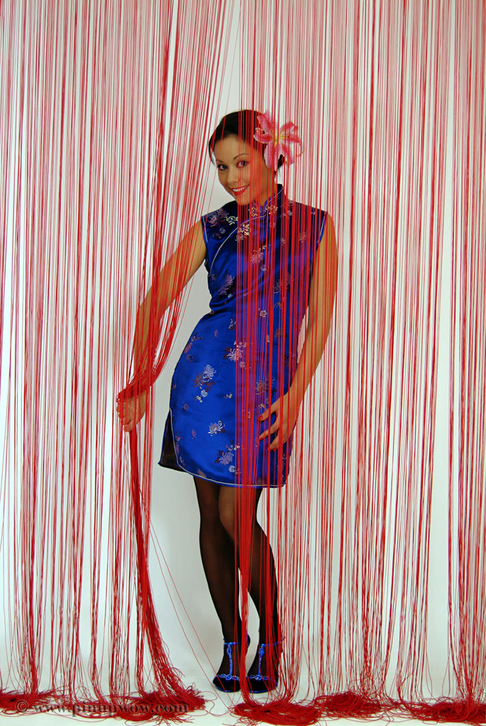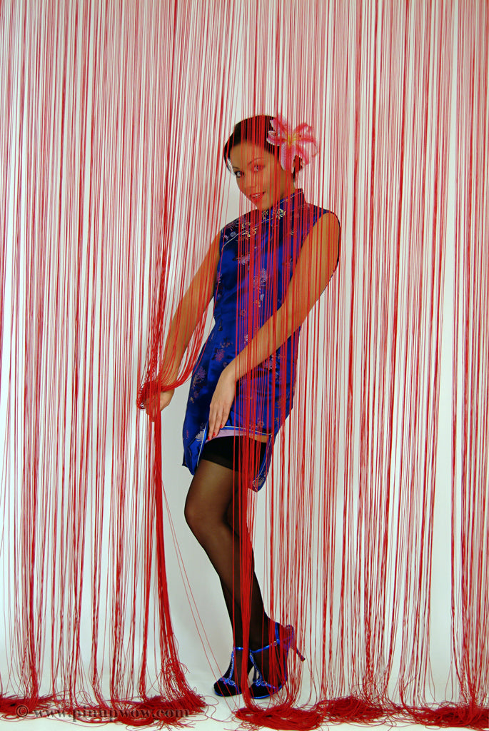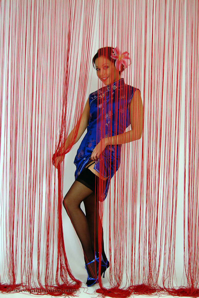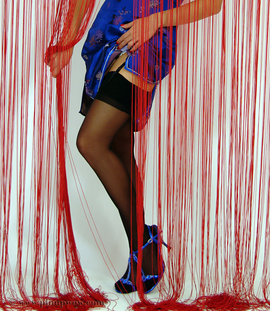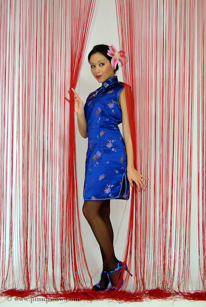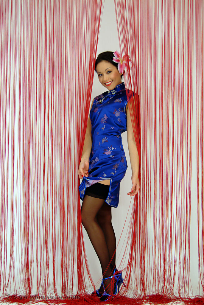 Pretty Pin-Up Petra looks stunning in a wonderful cheongsam with black seamed nylon stockings and heels. She also knows so well the secret of a perfect striptease. First you hide, but where you can still be seen, and then you slowly start to reveal yourself to your audience. The best things in life are always worth taking your time over!