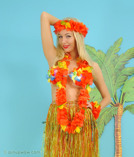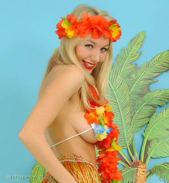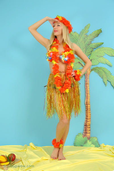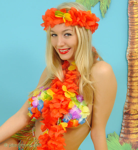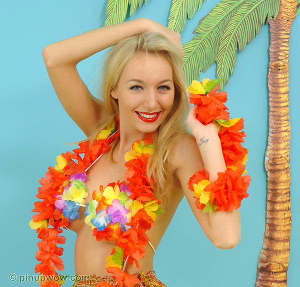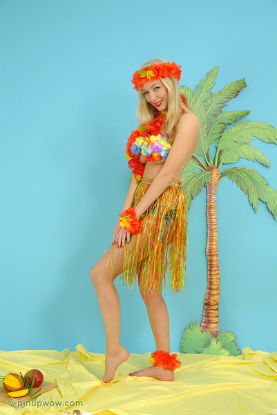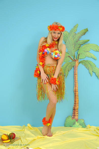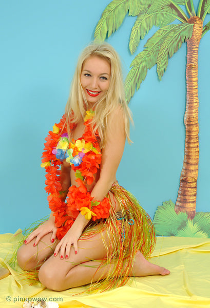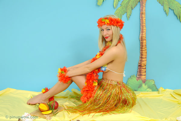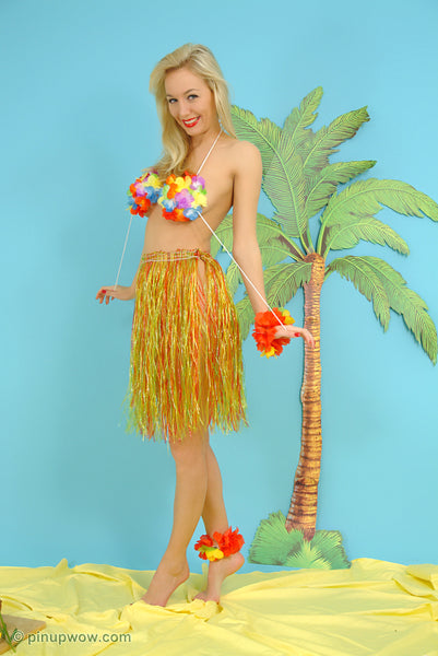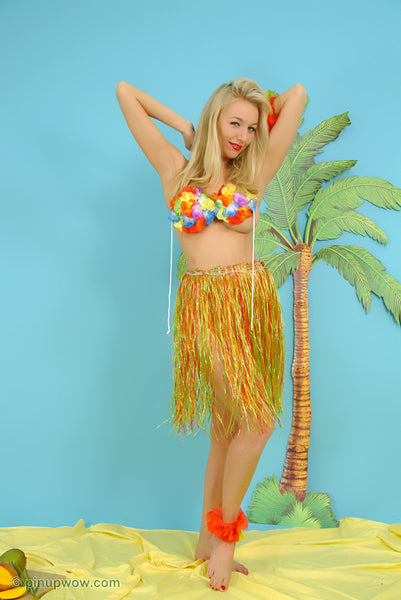 Curvy Pin-Up Hayley-Marie has gone to a sun-drenched island for a holiday and can't resist dressing up in the locals favourite beach wear. But being such a saucy minx, she also can't resist removing it all in a very cheeky striptease.